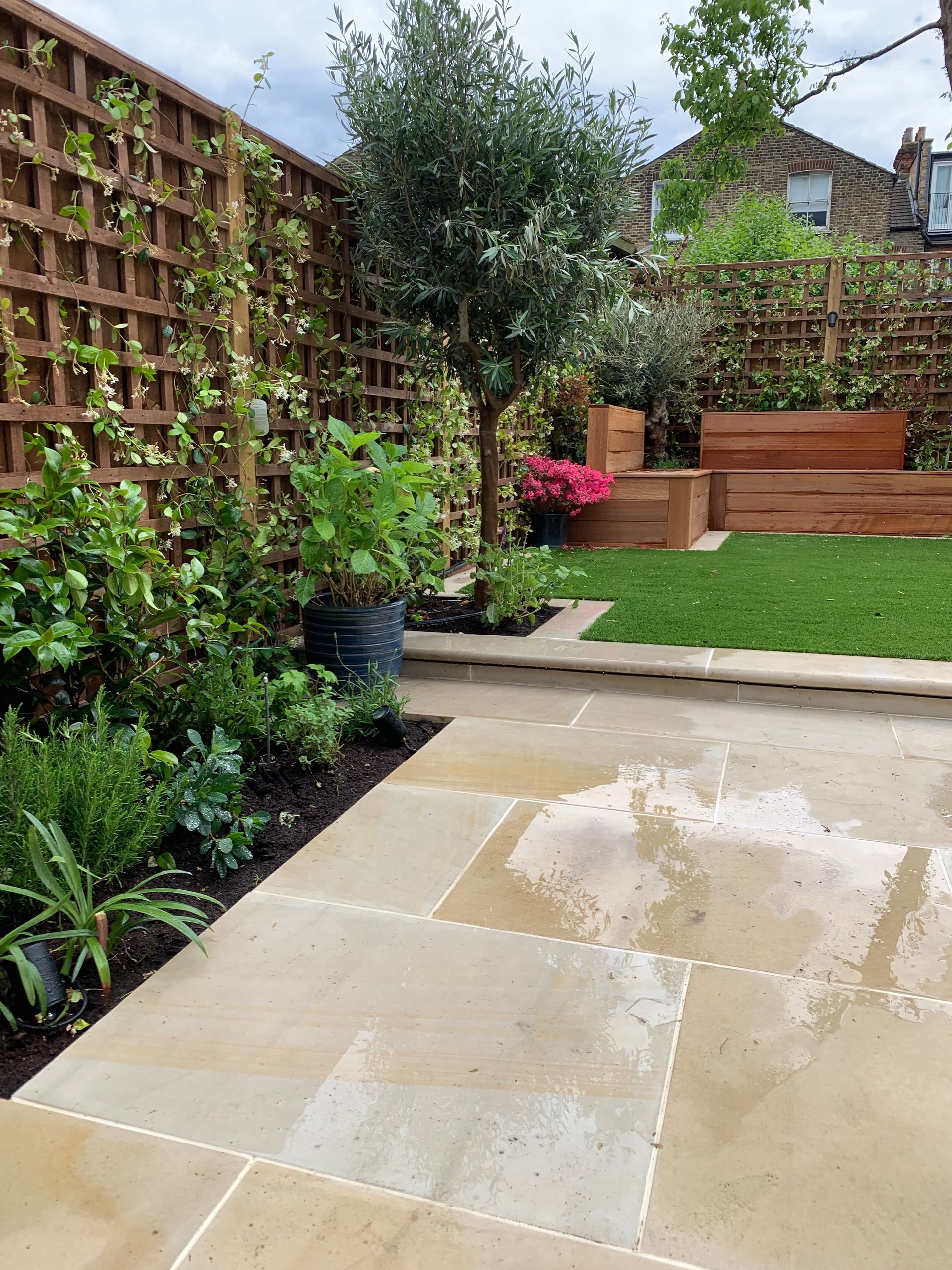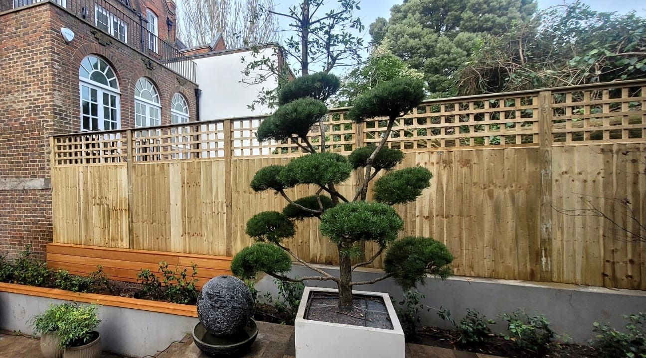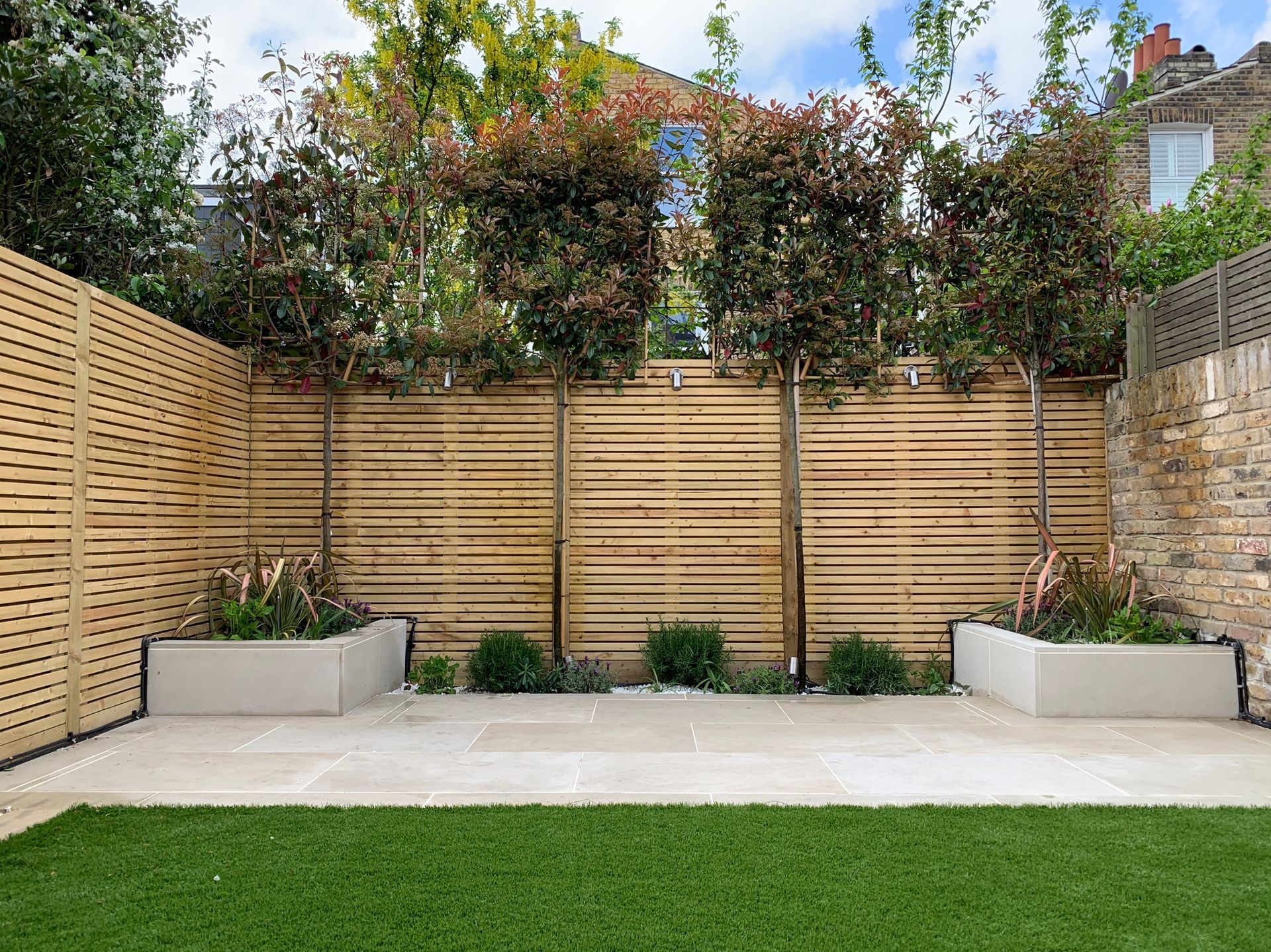Large evergreen plants can add much needed softening to London gardens that tend to be surrounded by buildings. Being evergreen is especially important when considering screening plants as screening properties will be maintained year round.