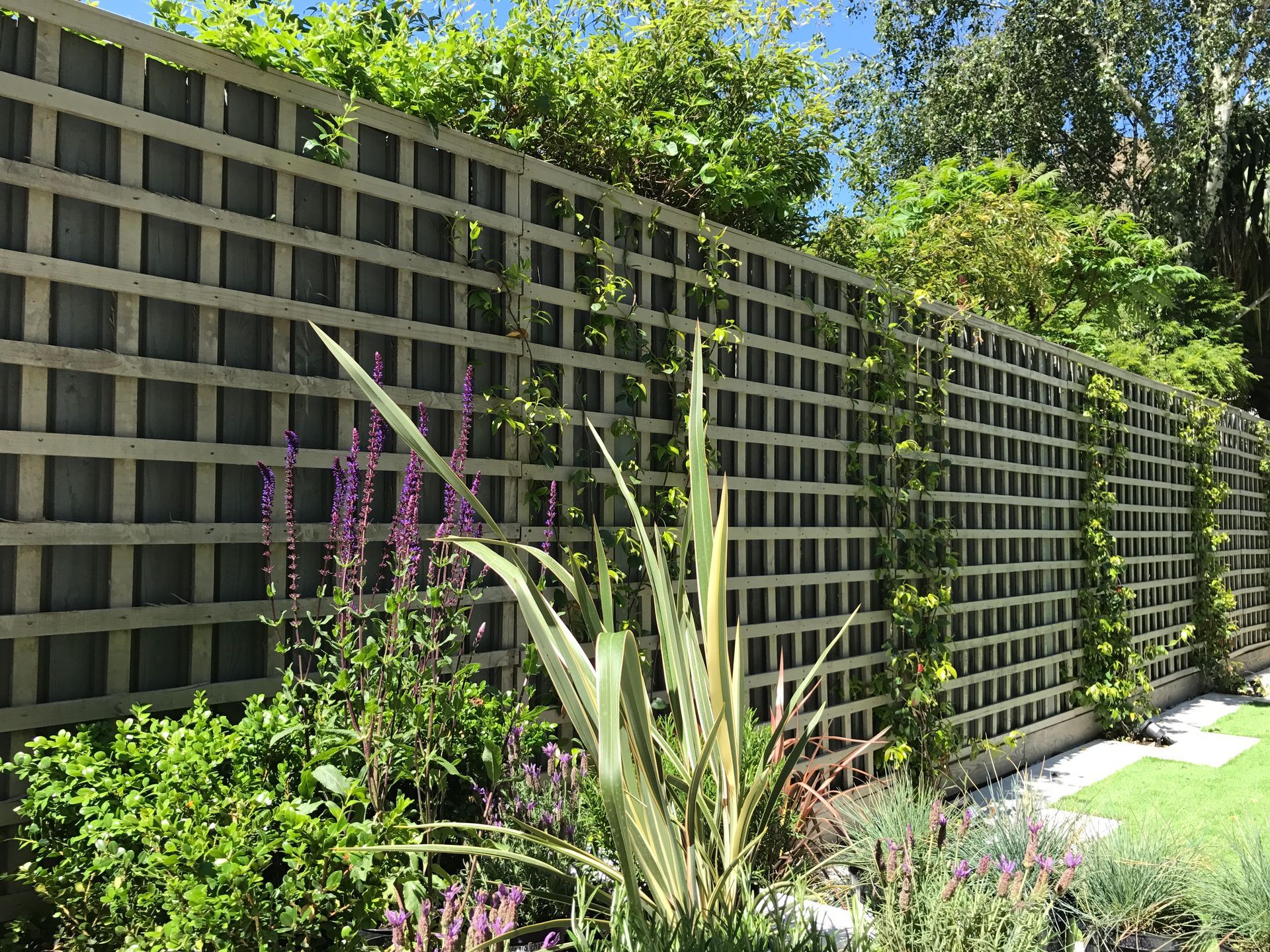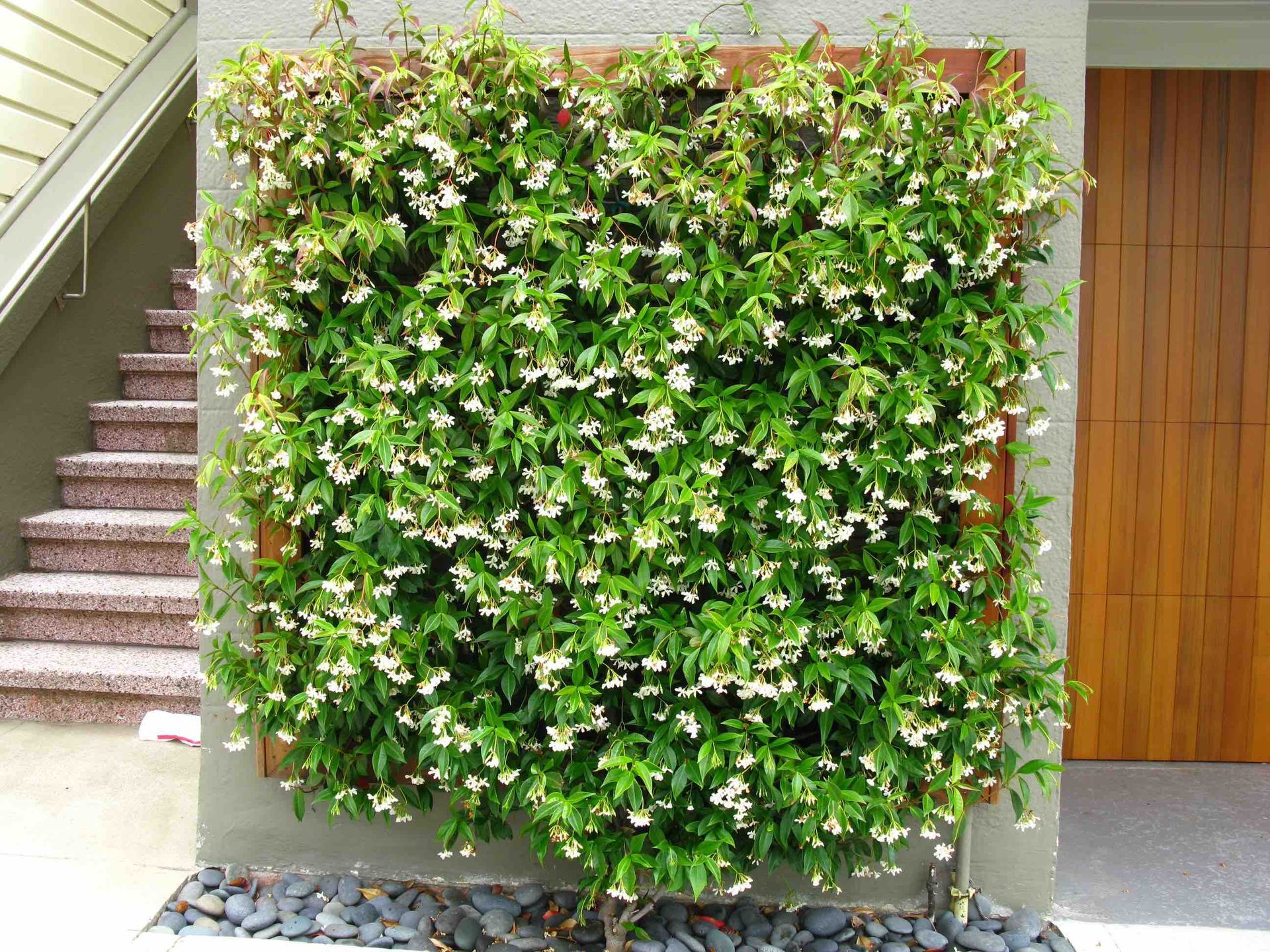 Evergreen climbers can also be integrated into fencing to create easy to maintain green walls.